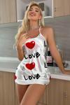 Byb Moda Tasarım Love Desenli Beyaz Saten Gecelik