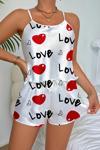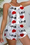 Love Desenli Beyaz Saten Şortlu Gecelik Takım