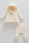 Ryze Çocuk LOVE HUGS YAKA NAKIŞLI KAPÜŞONLU ÜÇLÜ ALT ÜST TAKIM - CARAMELL - TKK2032 - Ekru - 9 - 12 Ay - TKK2032-Ekru-9 - 12 Ay Ekru