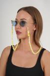 Love Sarı Kalpli Gözlük Zinciri - Kolye - Bileklik