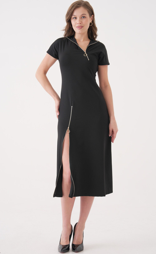 - Basic siluetiyle her vücut tipine uyum sağlayan bu elbise, zamansız bir parça olarak öne çıkar.