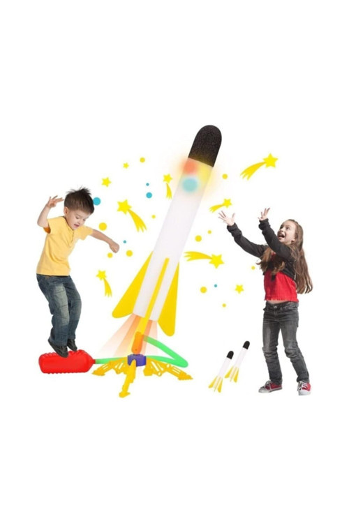 PAKET İÇERİĞİ: 2 adet yumuşak roket ( 1 ışıklı – 1 ışıksız), ayaklı platform üstünde 1 adet oynar başlıklı fırlatma rampası (roketatar), 1 adet spiral boru ve 1 adet roket pompası mevcuttur.