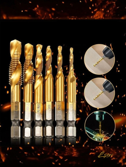 Listri Lstri 6 Adet Hss Metal Kılavuz Açma Civata Matkap Ucu Seti Metrik Diş Spiral Vida Seti Titanyum Kaplamalı