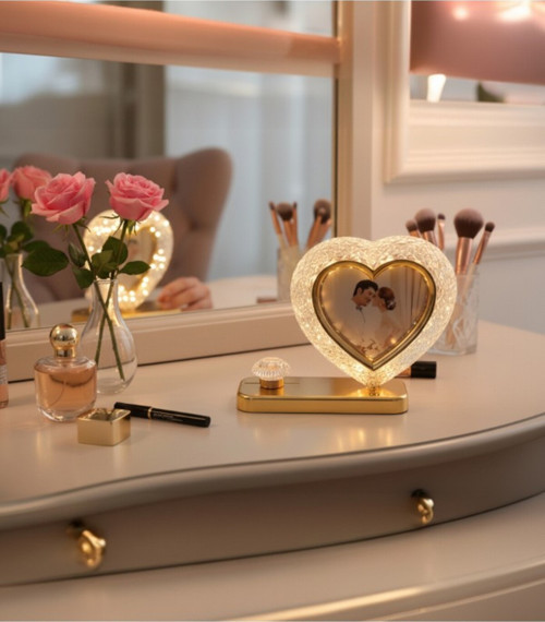 Lstri Sevgililer Ve Anneler Günü Led Işıklı Kristal Vazolu Fotoğraf Çerçevesi - 25X28Cm