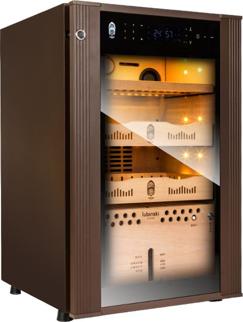 Lubinski marka elektronik kontrollü puro dolabı, Türkiye'de sadece Akmerkez Tobacco'da. Ürünün iç bölmeleri %100 gerçek ispanyol sedir ağacından imal edilmiştir, dışı ise metal ahşap karışım şık modern kaplama mevcuttur. Üzerinde nemi ve sıcaklığı ayarlayabileceğiniz pratik dijital kontrol paneli bulunmaktadır. Çift katmanlı ısı ve hava geçirmez cam kapağı purolarınızı korur. 3 Adet ayarlanabilir rafı mevcuttur. Led iç aydınlatması içerisinde mevcuttur. Yetkisiz kişilerin dolaba erişmesini engellemek için sadece parmak izi ile açılabilen kilitli sistem mevcuttur.