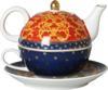 Lucky Art Clarissa Bone China Porselen Mavi Beyaz Naturel Desenli Tek Kişilik Demlik&Fincan LYHD 618