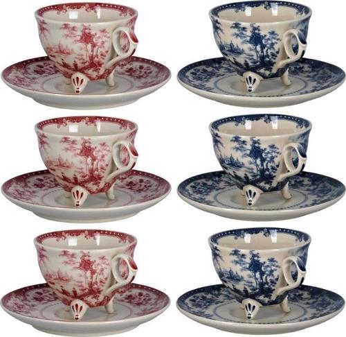 Set İçeriği: 6 adet çay fincanı, 6 adet fincan tabağı (3'ü kırmızı, 3'ü mavi desenli)