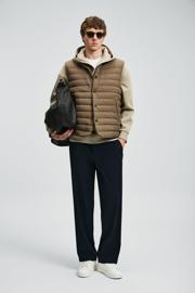 Detay: Çift cepli tasarımıyla işlevselliği ön plana çıkan bu erkek yelek, kaz tüyü dolgusu sayesinde üstün sıcaklık sağlar. Kolsuz ve dik yaka yapısı, hareket özgürlüğü sunarken soğuk havalarda boyun bölgesini korur. Astarlı iç yapısı ise ekstra konfor ve yalıtım sağlayarak kış kombinlerinin vazgeçilmez parçası olur;