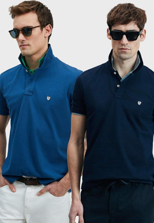 Lufian Logolu Pamuklu Comfort Fit Düğmeli Polo Yaka 2'li Erkek T Shirt 111040206S2 Lacivert-Açık Lacivert