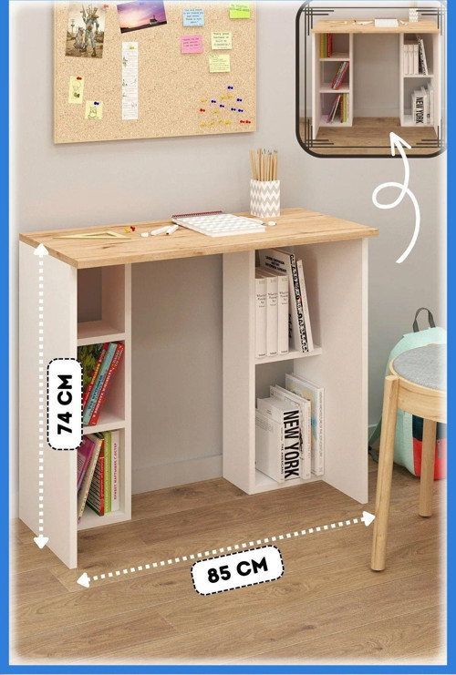 Fly Mobilya Luis Raflı Çalışma Masası, Beyaz Detroit Kitaplıklı Bilgisayar Masası, Ofis Ders Laptop Masası