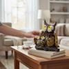 Lüks tasarımlı anne ve yavru baykuş heykeli, canlı renkleri ve özel motifli işlemeleri ile dikkat çeken şık bir dekoratif biblo modelidir.