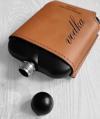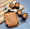 E-life shop Lüks Deri Kılıflı Paslanmaz Çelik İçki Matarası Avcı Kamp Outdoor Hediye Seti Cep Matarası 240 ml.