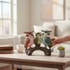 Lüks İşlemeli İkili Baykuş Heykeli | Renkli Dal Üstü Biblo | Yeni Ev Ofis Dekor Hediye 15 cm