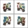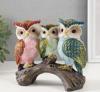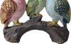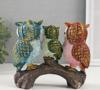 E-life shop Lüks İşlemeli Canlı Renkli Dal Üzerinde 3'lü Baykuş Aile Heykeli Dekoratif Biblo Ev & Ofis Hediyesi