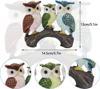 Lüks İşlemeli Canlı Renkli Dal Üzerinde Üçlü Baykuş Aile Heykeli Dekoratif Biblo Yeni Ev Ofis Yeni Yıl Hediyesi 15 cm.