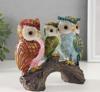 Lüks İşlemeli Canlı Renkli Dal Üzerinde İkili Baykuş Heykeli