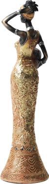 E-life shop Lüks İşlemeli Geleneksel Yerel Kıyafetli Afrikalı Kadın Heykeli Dekoratif Biblo Ev Ofis Hediyesi Md1