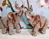 Lüks İşlemeli Simli 2li Fil Biblo Seti Vitrin Süsü Yeni Ev Ofis Hediyesi Dekoratif Obje Heykelcik