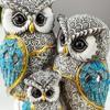 E-life shop Lüks İşlemeli Taşlı Aynalı 3’lü Aile Baykuş Biblo Heykel Ev Ofis Yeni Yıl Hediyesi Dekor Vitrin Süsü