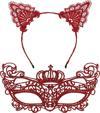 Lüks Kırmızı Dantel Taçlı Maske Seti 2 No - Parti, Balo, Kostüm Aksesuarı