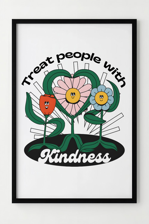 Lumiyo Nezaket Mesajlı Çiçekli Ahşap Çerçeveli Dekoratif Poster