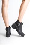 LUNA Fermuarlı Lastikli Ortopedik Taban Topuklu Kadın Bot  CST - Siyah