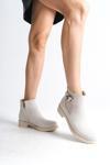 LUNA Fermuarlı Lastikli Ortopedik Taban Topuklu Süet Kadın Bot SKT - Krem