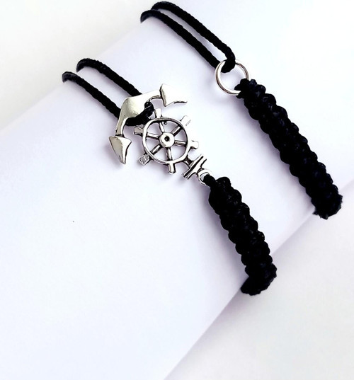 Luna Luster Gümüş Siyah Yelken Tasarım Erkek Ip Ayarlanabilir İkili Bileklik Yılbaşı Yeni Yıl Hediye