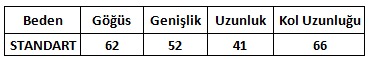 Ürün Beden Tablosu: