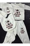 Yüzde yüz pamuktur.10 parça battaniye tulum kruvaze üst patikli alt eldiven şapka önlük mendil kısa kollu zıbın iç zıbın.