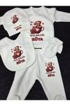 Gros Shop Yeni Doğan Müslin 3'li Kimono Bağcıklı Tulum %100 Pamuk Organik (Kişiye Özgü İsimli Nakış Desenli)