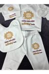 Yüzde yüz pamuktur.5 parça kruvaze üst patikli alt eldiven şapka önlük Sipariş sonrası sipariş numarası ile birlikte yazılmasını istediğiniz ismi belirtmeyi unutmayınız