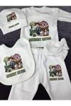 Yüzde yüz pamuktur.10 parça battaniye tulum kruvaze üst patikli alt eldiven şapka önlük mendil kısa kollu zıbın iç zıbın.