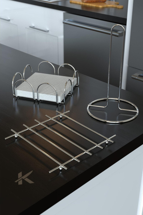 Karteya 3'Lü Lüx Parlak Krom Mutfak Servis Sunum Seti (Havluluk - Peçetelik - Nihale) Tasarımlarımız özel bir kaplama yöntemi ile görsellerde gördüğünüz kadar net ve parlaktır. Nihale Ölçüsü: 20cm * 20cm Taşıma Alanı, 2cm Yükseklik Kare Peçetelik Ölçüsü: En Boy : 20*20 cm Yükseklik:7 cm Rulo Kağıt Havluluk Ölçüsü: Dairesel taban : 15 cm, Yükseklik: 32 cm