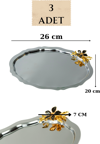 Yaren Style Lüx 3'lü Oval Mini Zambak Çiçek Figürlü Paslanmaz Çelik Kahve Sunum Tepsisi – Kararmayan Şıklık