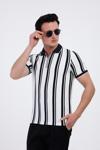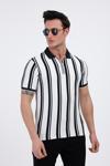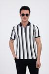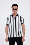 LUXOR Polo Yaka Çizgili Pamuklu Tişört - Beyaz