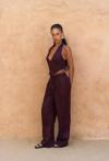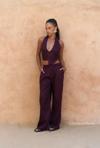MAI STUDIOS CO. Lvdovila Bordo Keten Crop Yelek Pantolon Takım