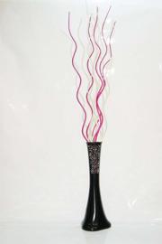Akrilik vazo gerçek ahşap doğal dallar Siyah desenli vazo ve krem-fuşya dallardan oluşur