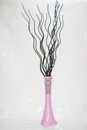 60 cm Uzun Pembe Desenli Vazo 15 Adet Siyah Dal