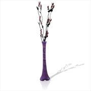 M3Decorium Uzun 15 Kırmızı Salkım Üzümlü 5 Siyah Dal Çatlatma Şeffaf Transparan Uzun Mor 80 Cm Konik Cam Vazo