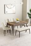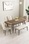 Asaella Mobilya Mabel Barok Desen 80x132 Açılabilir Mdf Masa Yemek Odası Takımı, Mutfak Takımı 4 Sandalye, 1 Bench