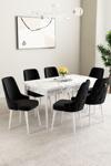 Mabel Beyaz Mermer Desen 80x132 Açılabilir Yemek Odası Takımı 6 Adet Sandalye