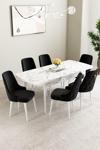 Asaella Mobilya Mabel Beyaz Mermer Desen 80x132 Açılabilir Mdf Masa Yemek Odası Takımı,Mutfak Takımı 6 Adet Sandalye