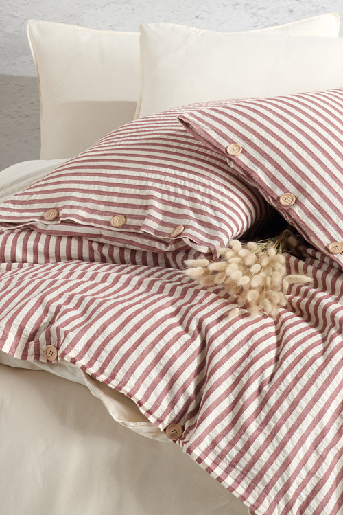 - Çizgili deseniyle modern ve şık bir görünüm sunarken, her yatak odasına estetik bir katkı sağlar.