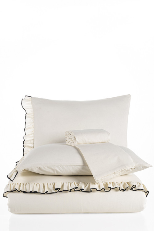 Macas Home Lotis %100 Pamuklu Süs Overlok Dikişli Fırfırlı Yıkamalı Battal Boy Nevresim Takımı 240x220