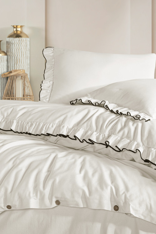Macas Home Lotis %100 Pamuklu Süs Overlok Dikişli Fırfırlı Yıkamalı Tek Kişilik Nevresim Takımı 160x220