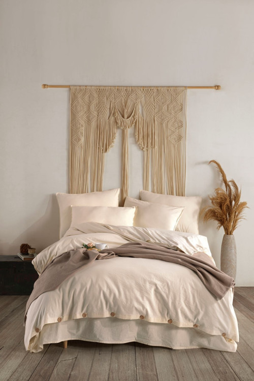 - Krem rengi ve bej tonlarındaki zarif tasarımıyla yatak odanızda huzurlu bir atmosfer yaratır.