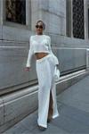 Lela Çizgili Yırtmaçlı Uzun Etekli Crop Bayan Takım 5865717 SİYAH-BEYAZ