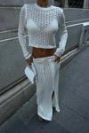 Nakışlı Etekli Takım Bej Beyaz S3899 - Image 1