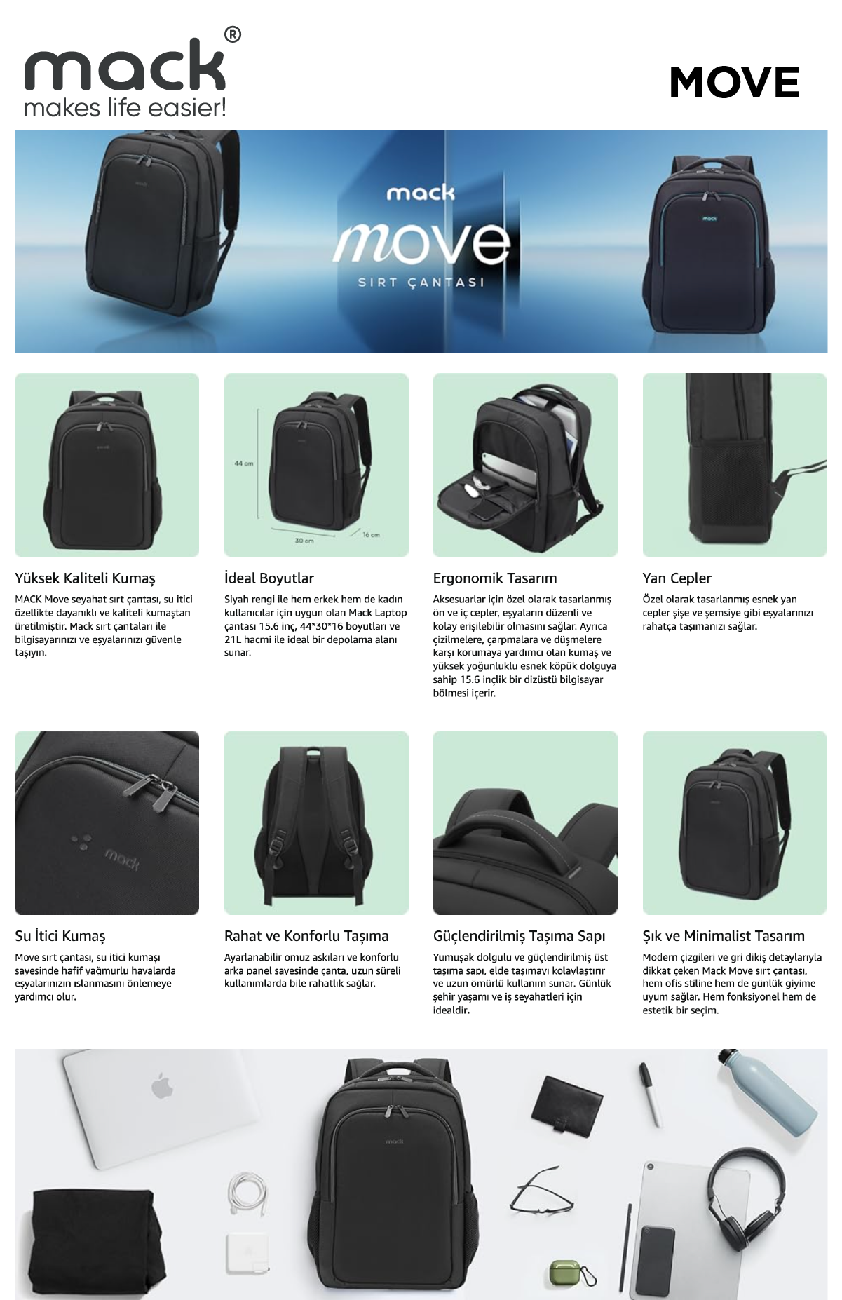 Mack Mack Mcc-505Bg 15.6" Move Notebook Sırt Çantası Siyah Gri